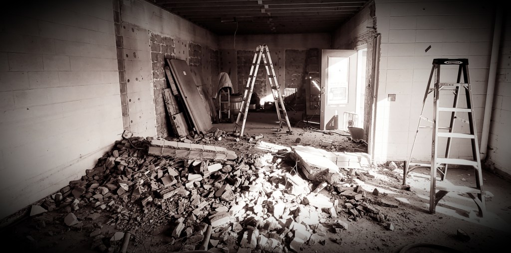 Just like anything in life we need to start by figuring out what probable outcome we expect to have or see as an end result of our actions. This outcome or end result will then be the guiding factor in all actions taken to achieve or follow through with a project or task. For the last few weeks at work we’ve been doing ‘demo’ (demolition), as they call it in the construction industry, to ‘gut’ a building and get it ready for a new, remodeled finish.