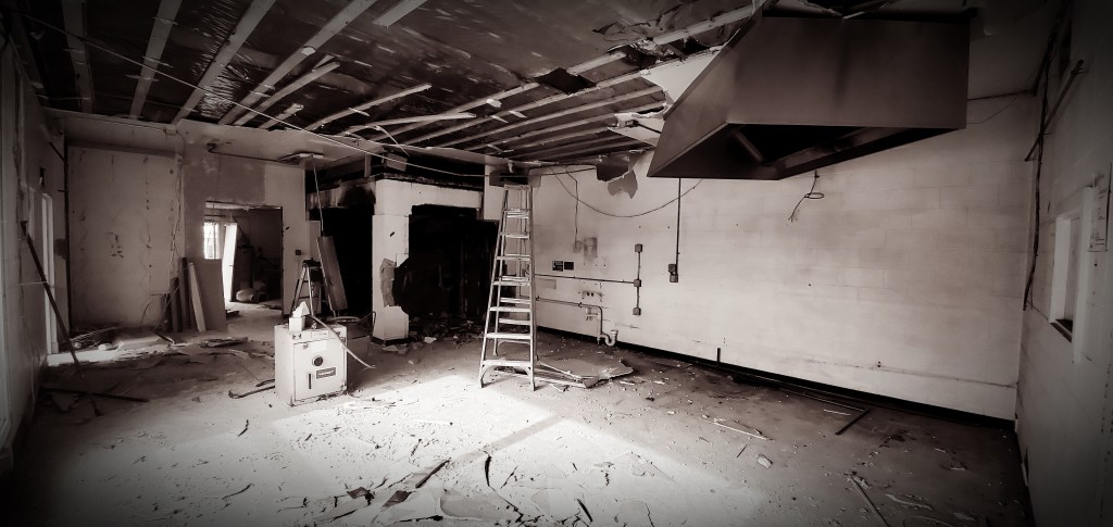 We knew what walls needed to come down, what appliances and fixtures needed to go and how much time we had to get it all done. The end result would be an empty shell with a few inside walls, ready for tenants to ‘build-out’ in accordance with their own needs. When gutting a building to be remodeled, it can seem like an easy task to just go in and tear down the old stuff and clean it up, getting it ready for finish work. But there are complications with old buildings that have already been remodeled or had additions built on to them, sometimes there are layers underneath the visible layers that also need dealt with.